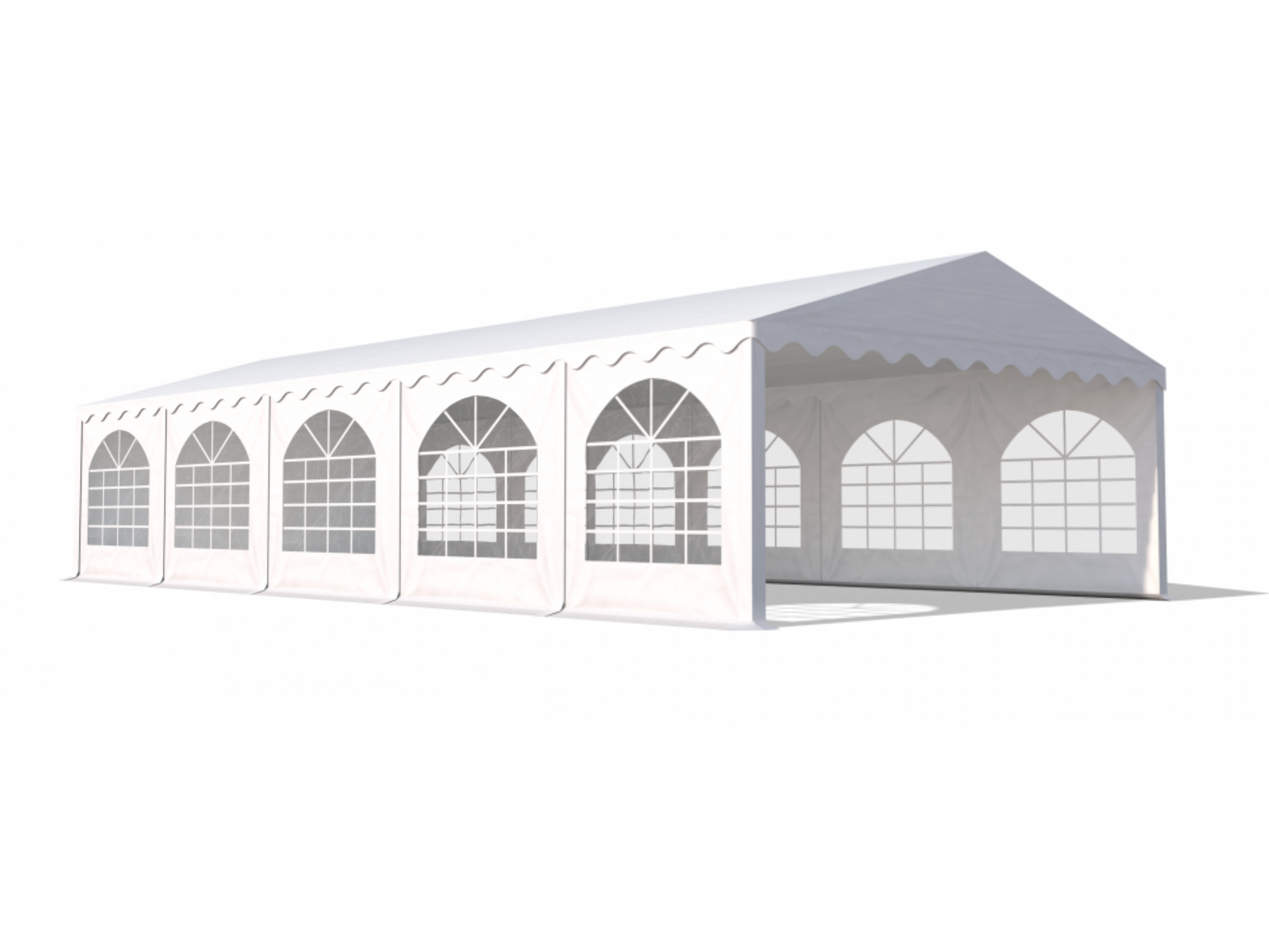 Et værbestandig telt med vegger og tak av polyeten. Dette teltet beskytter deg mot både stekende sol og grusom vind og regnvær. Veggene på langsidene har sprosser som gir teltet en stilig og luksuriøs stil.